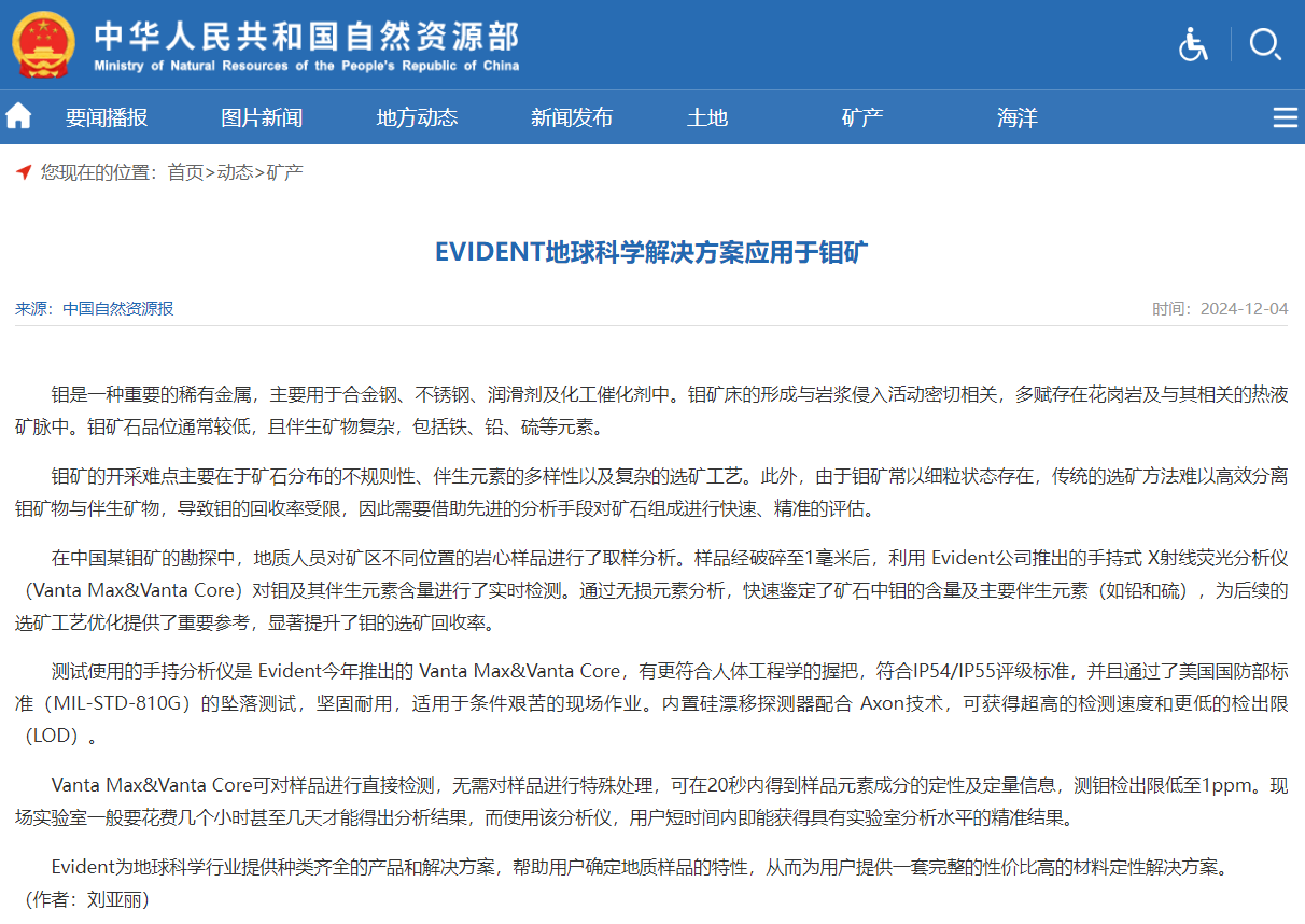 在中國某鉬礦的勘探中,地質(zhì)人員對礦區(qū)不同位置的巖心樣品進行了取樣分析。樣品經(jīng)破碎至1毫米后,利用 Evident公司推出的手持式 X射線熒光分析儀(Vanta Max&Vanta Core)對鉬及其伴生元素含量進行了實時檢測。通過無損元素分析,快速鑒定了礦石中鉬的含量及主要伴生元素(如鉛和硫),為后續(xù)的選礦工藝優(yōu)化提供了重要參考,顯著提升了鉬的選礦回收率。
