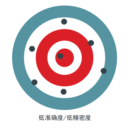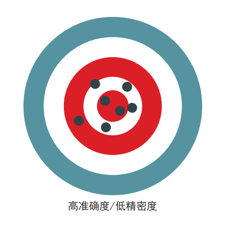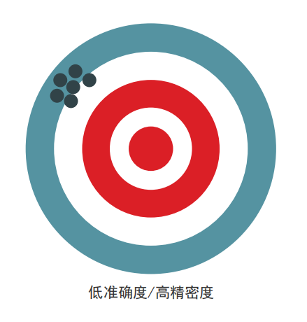 精密度是可重復(fù)性的一種度量,或者說一個檢測結(jié)果與另一個檢測結(jié)果的相近程度。準確度表明所獲得的結(jié)果是否準確地反映了實際情況(接近真值)。當然,我們希望任何分析技術(shù)都能提供優(yōu)質(zhì)的精密度和準確度。