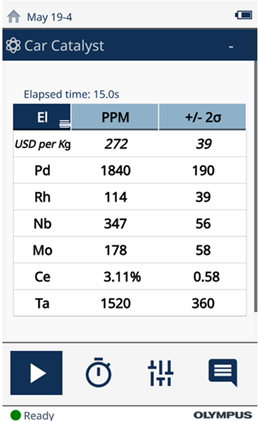在進行均質化之前,回收行業應使用Vanta XRF分析儀對相同類型的材料進行分揀和分離。可分為三個或四個等級,例如氧傳感器、三元催化器、二元催化器和柴油微粒過濾器(DPF)。為改進分類流程,可使用“偽元素”功能在分析儀數據庫中定義具體的等級。