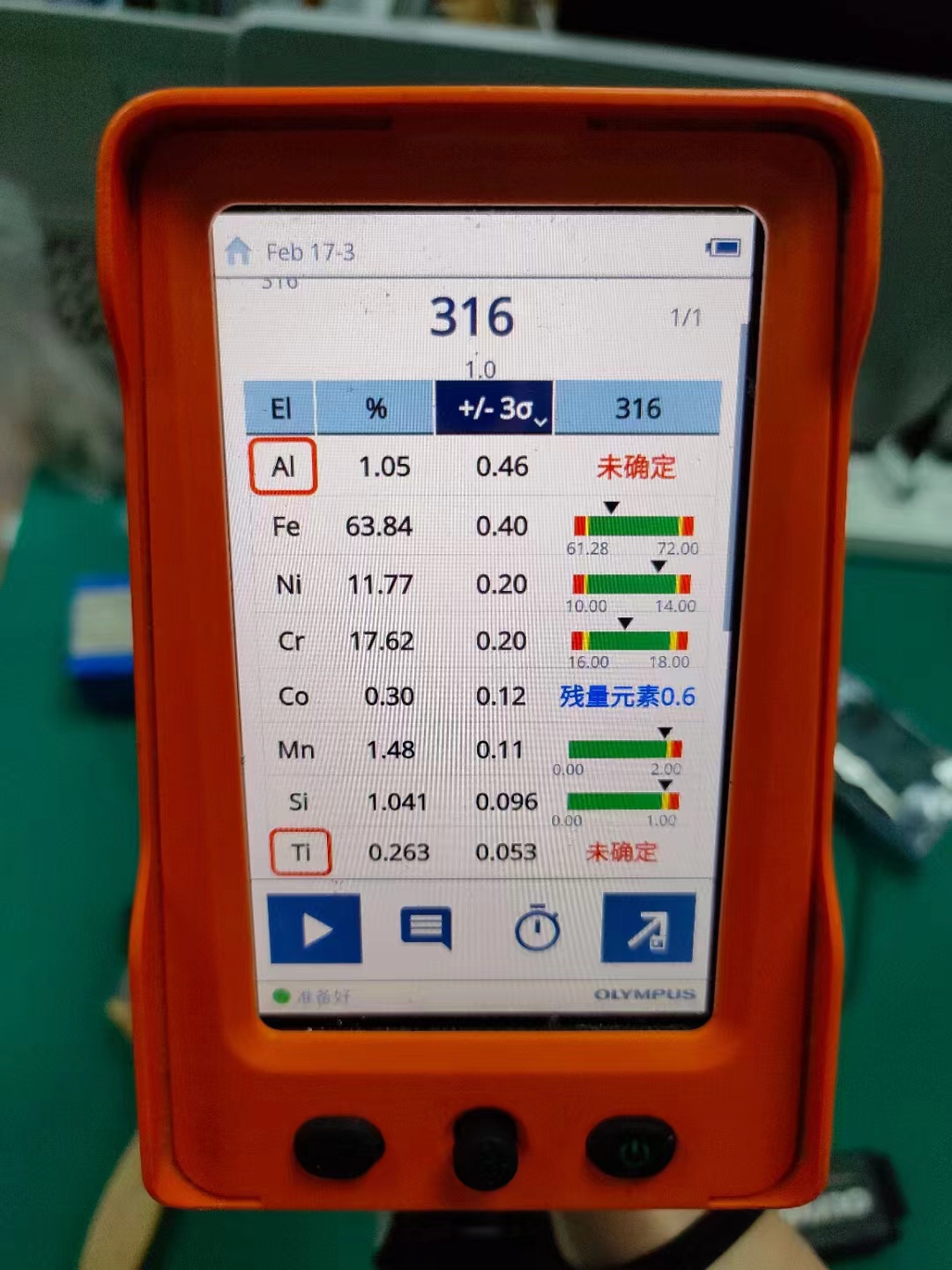 5)可在幾秒內辨認合金牌號,并且屏幕會清晰顯示出牌號對比信息以及元素含量百分;